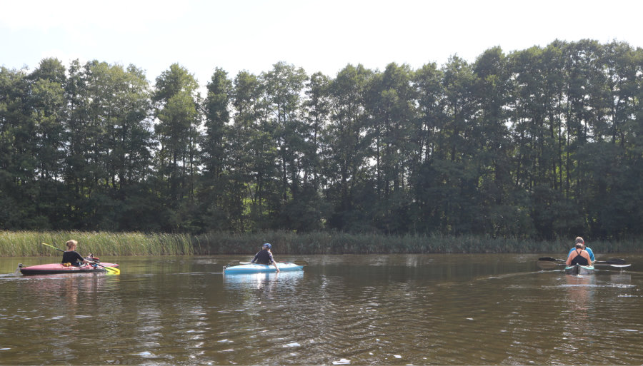 Mit heftigem Gegenwind geht es nun wieder über den Woblitzsee zurück   zum ehemaligen Kanulager zum Mittagsimbiss.