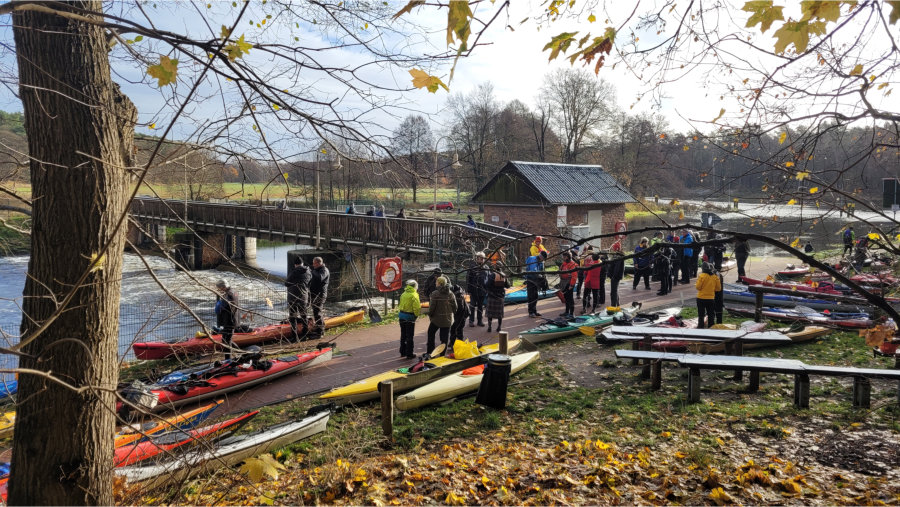 Start unterhalb des Wehres Große Tränke, noch scheint etwas Sonne